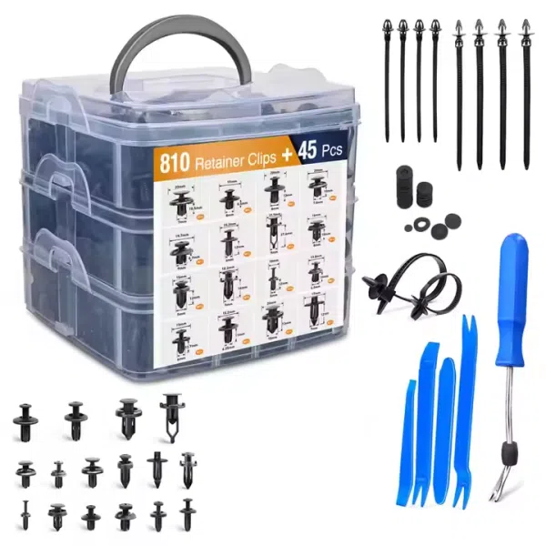 855Pcs Car Clips Push Retainer Clips & Auto Fasteners Assortment Nylon Bumper Fender Rivets with Cable Ties Screwdriver